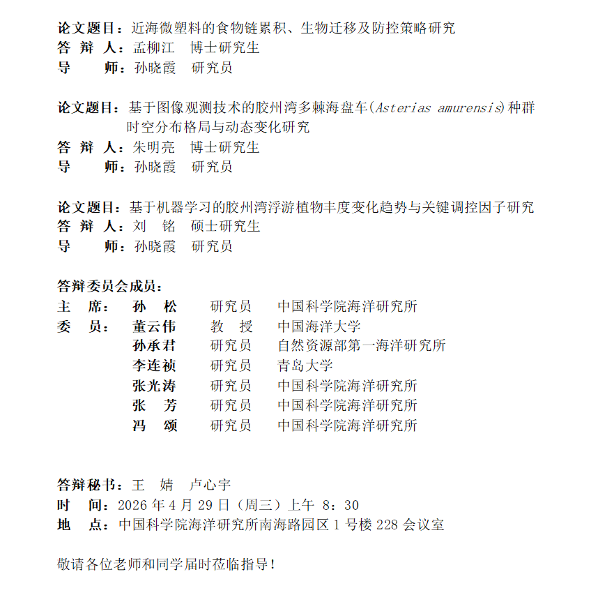 胶州湾海洋生态系统国家野外研究站研究生学位论文答辩(20260429)